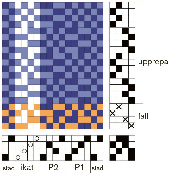 Skaft 1–4 upprepas 28 gånger = 112 tr. (2 x 56 tr/färg som i varpordningen)